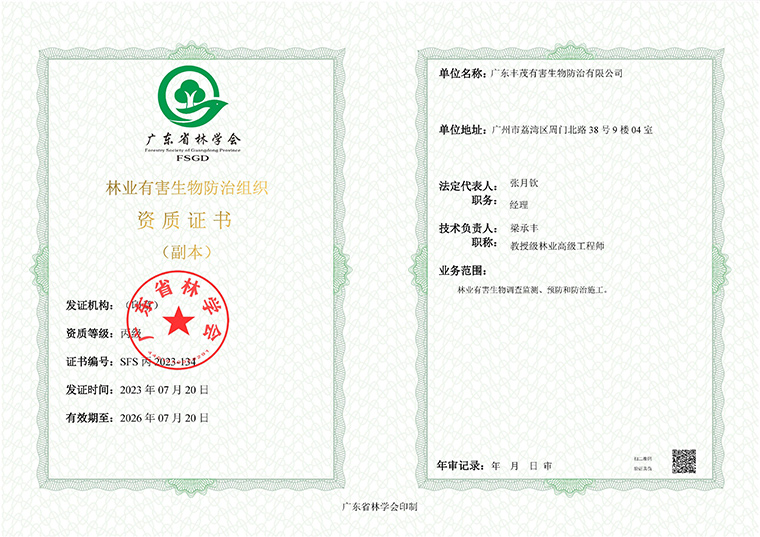 林业有害生物防治组织资质证书
