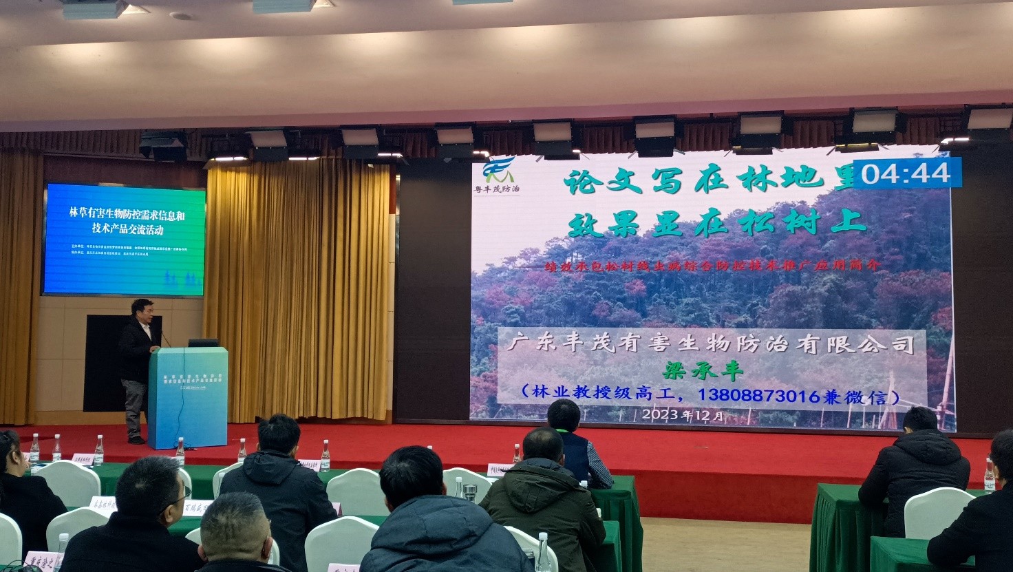 在企业产品技术交流环节中,我公司技术总工程师梁承丰在会上介绍了综合治理松材线虫病疫情技术体系,会上得到行业各界人士的高度重视和热烈反响。通过这种大型会议的交流,我公司知名度将会得到进一步的扩大和影响,期待未来不可限量,早日完成国家制定的“绿水清山就是金山银山”的历史使命!